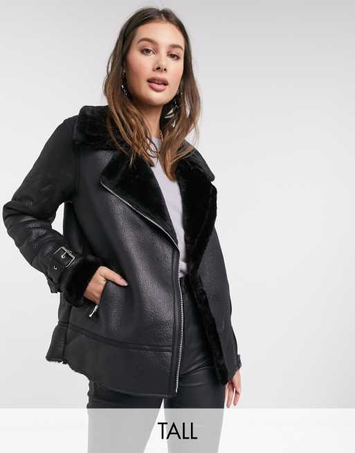 New Look Tall – Schwarze Pilotenjacke mit Kunstpelzbesatz