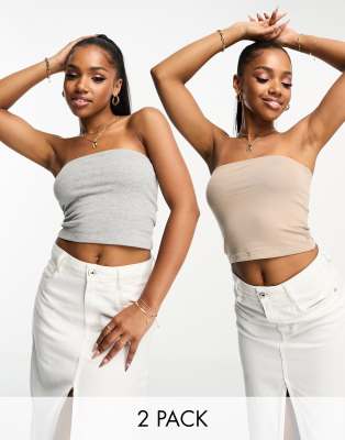 New Look – 2er-Pack Schlauchoberteile in Grau und Beige