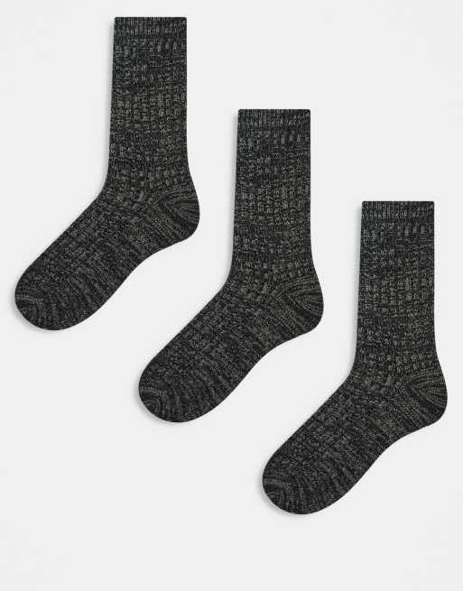 New Look – 3er-Pack gerippte Socken aus schwerem Stoff in Dunkelgrau