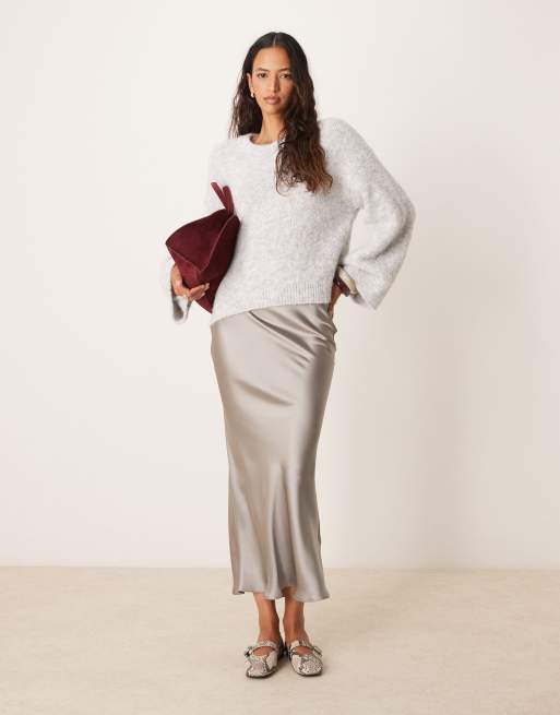 New Look – Asymmetrisch geschnittener Satin-Midirock in Grau