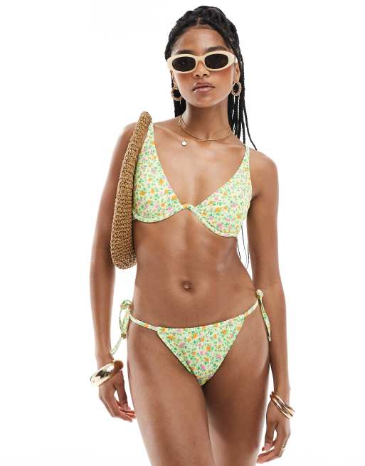 New Look – Bikini in Gelb mit Blümchenmuster