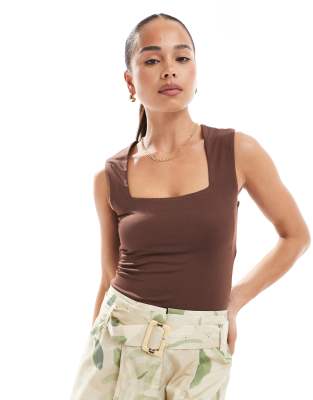 New Look – Bodysuit in Braun mit eckigem Ausschnitt