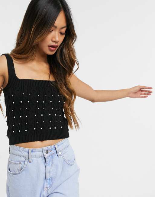 New Look – Camisole in Schwarz mit Perlenbesatz, Kombiteil