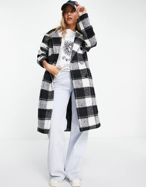 New Look – Doppelreihiger Oversize-Mantel mit Vichykaromuster