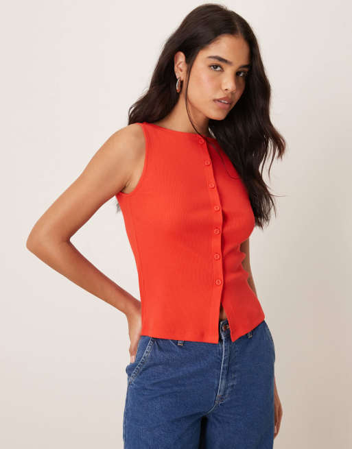 New Look – Durchgeknöpftes Tanktop in Rot