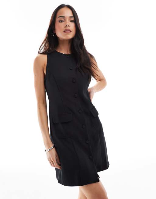 New Look – Elegantes Latzkleid in Schwarz mit Knopfleiste vorn