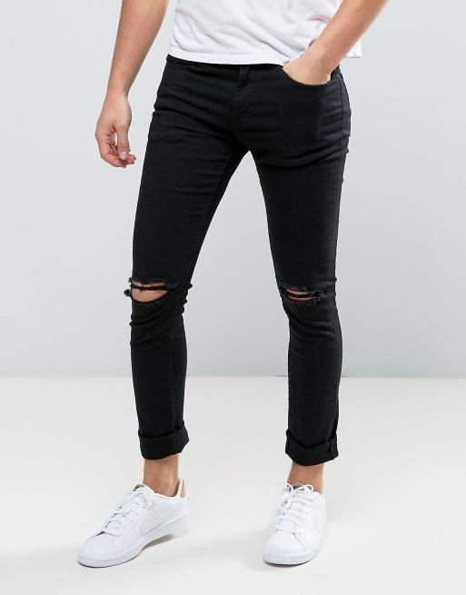 New Look – Enge, schwarze Jeans mit Knierissen