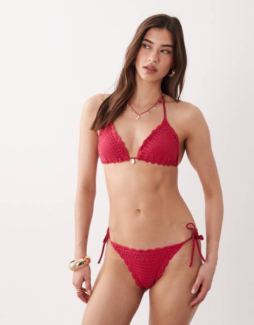 New Look – Gehäkelter Bikini in Dunkelrosa