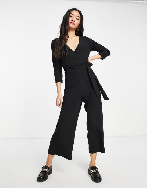 New Look – Gerippter Wickel-Jumpsuit in Schwarz