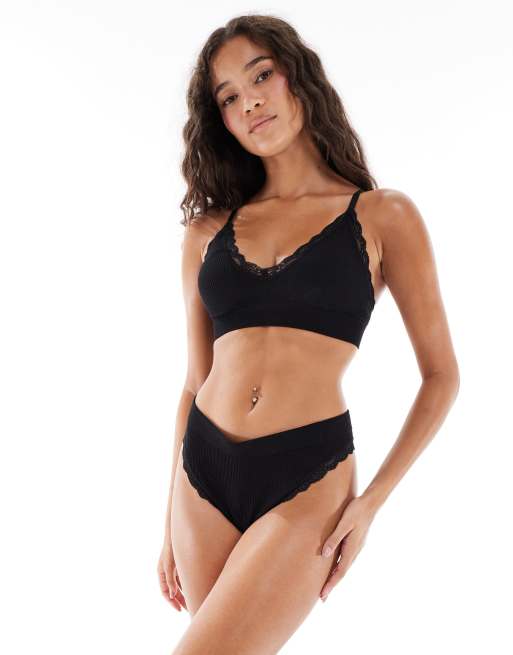 New Look – Geripptes, nahtloses Lingerie-Set aus Spitze in Schwarz