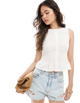New Look – Gesmoktes Trägertop in Weiß mit Knopfleiste