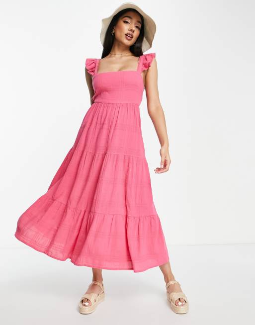 New Look – Gestuftes Midikleid in Rosa mit Bindedetail am Rücken