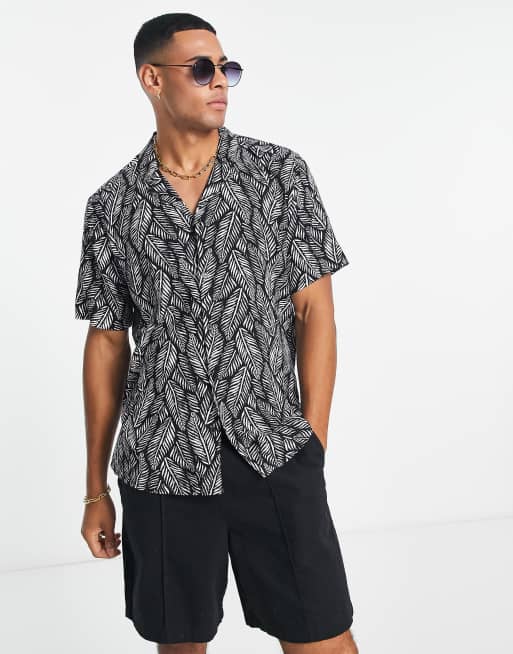 New Look – Hemd mit Reverskragen und Blumenmuster in Schwarz-Weiß