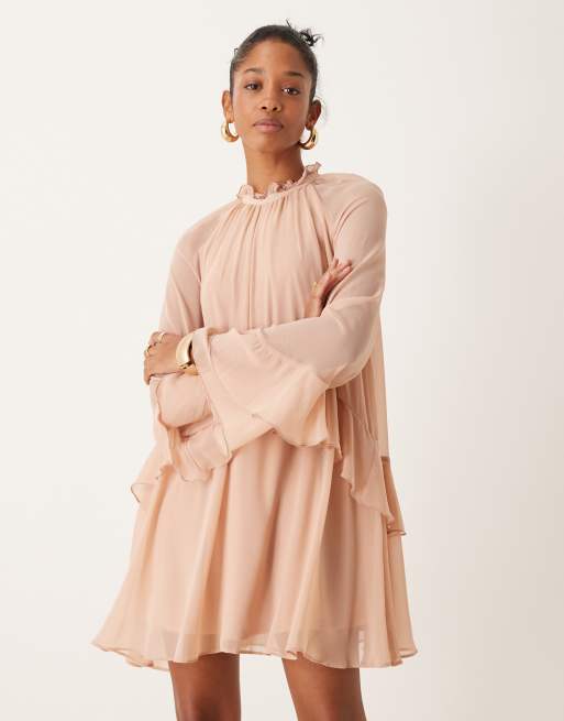 New Look – Hochgeschlossenes Minikleid in Blassrosa mit Rüschen