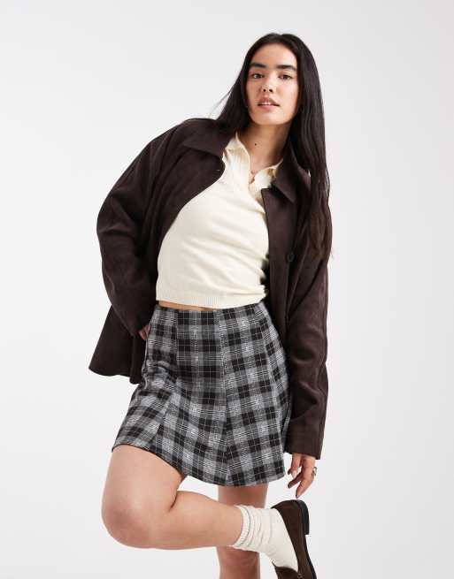 New Look – Karierter, schwingender Minirock in Grau