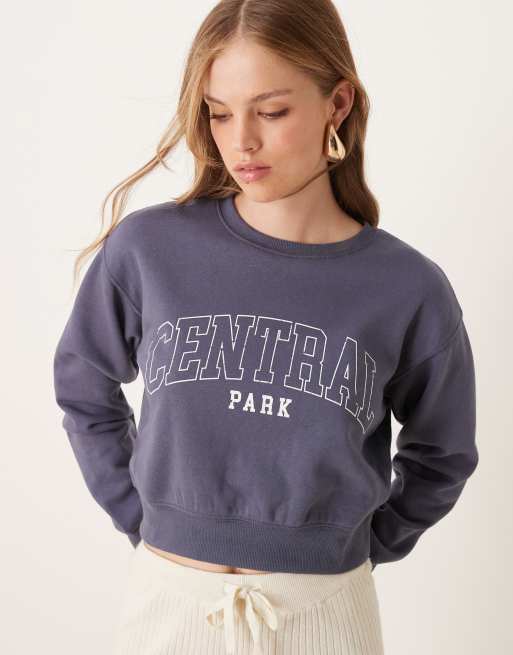 New Look – Kurz geschnittener Pullover in Blau mit „Central Park“-Print