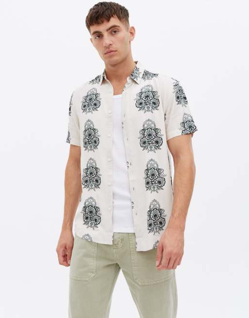 New Look – Kurzärmliges Hemd in Weiß mit Paisley-Print