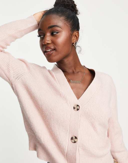 New Look – Kurze Strickjacke in Hellrosa