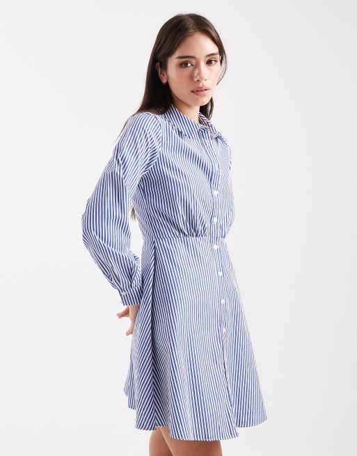 New Look – Kurzes Skater-Hemdkleid in blau gestreift