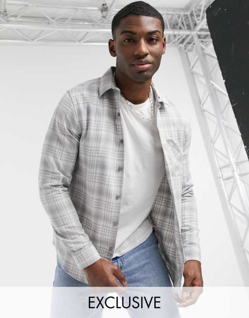 New Look – Langärmliges, kariertes Hemd in Hellgrau