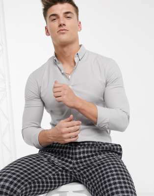 New Look – Langärmliges Muskel-Oxfordhemd in Grau