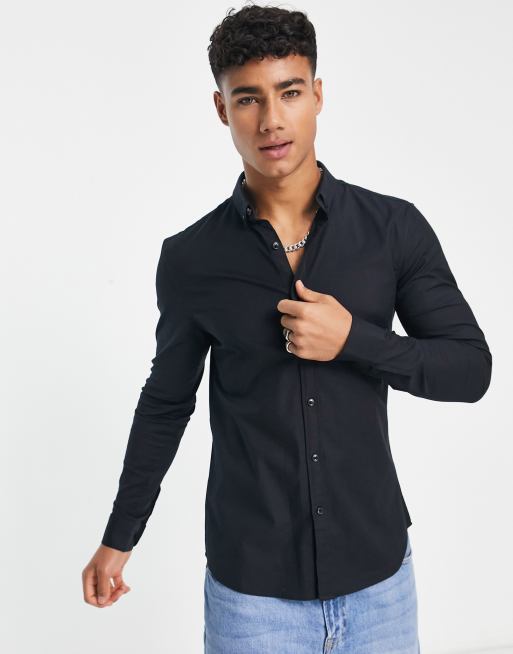 New Look – Langärmliges Oxford-Hemd in Schwarz
