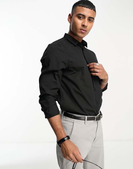 New Look – Langärmliges Popeline-Hemd in Schwarz