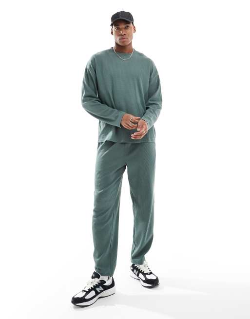 New Look – Langärmliges Set in Khaki mit Waffelstruktur