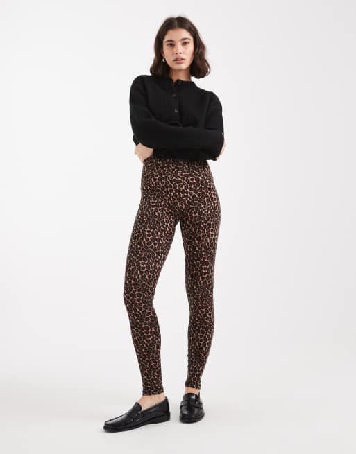New Look – Leggings mit hohem Bund und Leopardenmuster in Braun