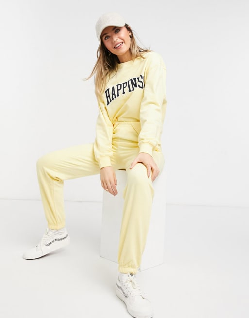 New Look – Lounge-Set in Hellgelb mit „Happiness“-Print
