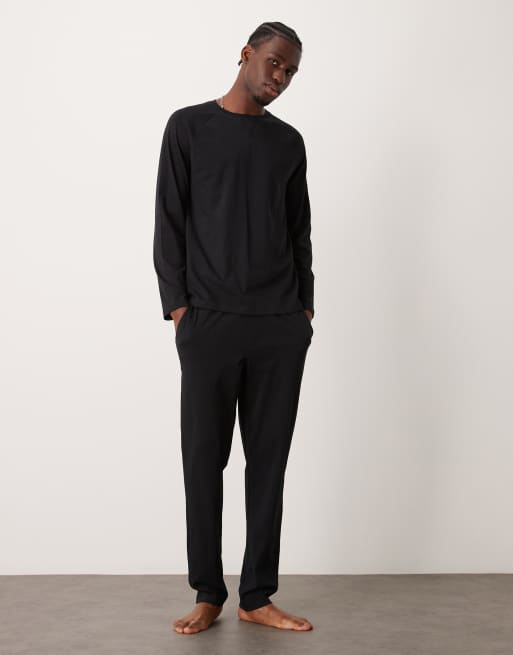 New Look – Loungwear-Set in Schwarz, aus langärmligem Shirt und Jogginghose
