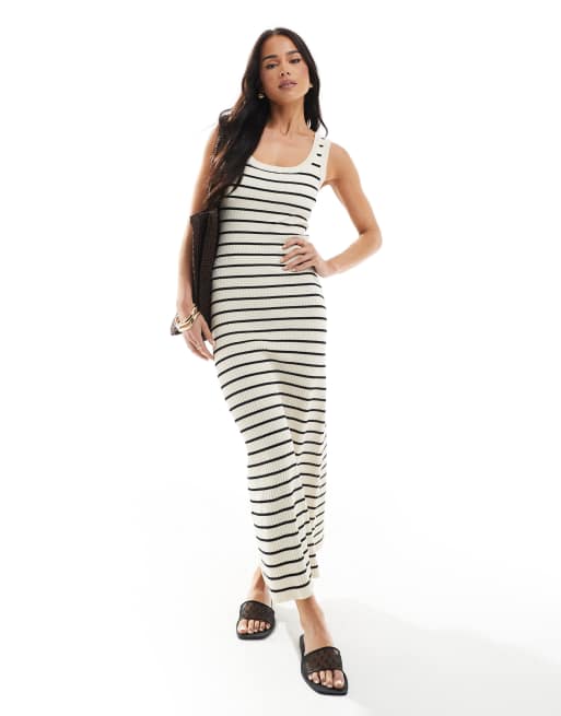 New Look – Maxi-Strickkleid in Cremeweiß mit Streifen