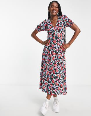 New Look – Midikleid mit Blumenmuster und Rückenausschnitt