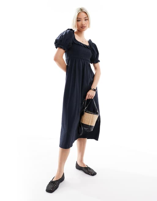 New Look – Milchmädchen-Kleid in Marineblau mit Puffärmeln
