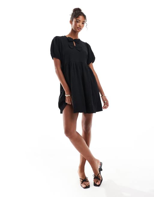 New Look – Mini-Hängerkleid in Schwarz mit Schleife vorn