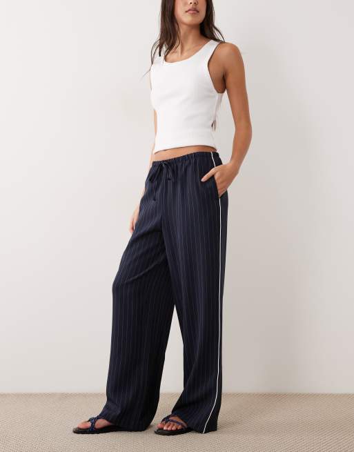 New Look – Nadelstreifen-Hose in Blau mit weitem Schnitt