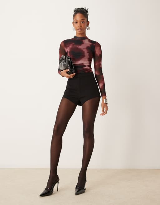 New Look – Netzstoff-Body mit seitlicher Raffung und rotem Muster