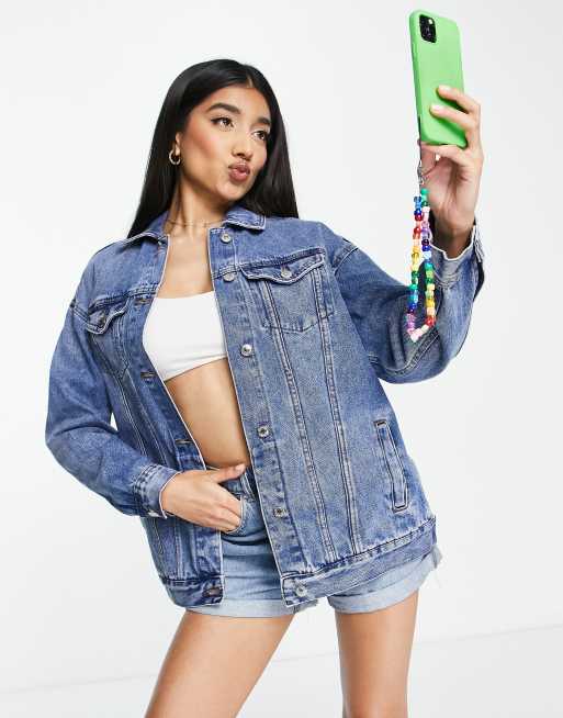 New Look – Oversize-Jeansjacke in mittelblauer Waschung