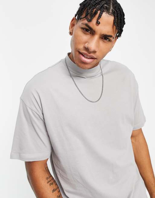 New Look – Oversize-T-Shirt in Hellgrau mit Stehkragen