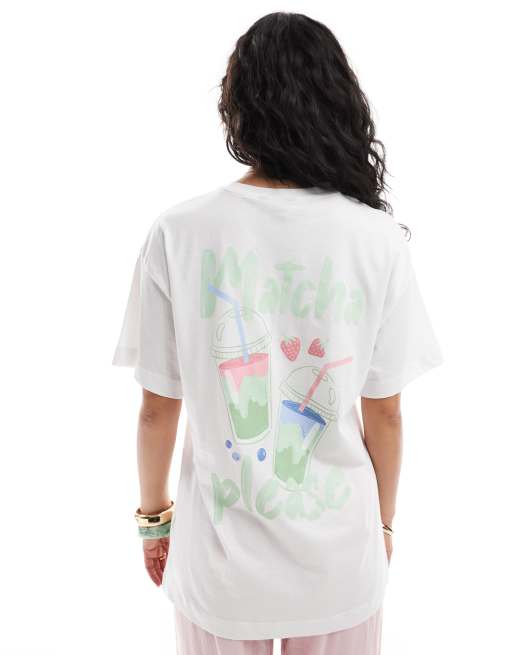 New Look – Oversize-T-Shirt in Weiß mit Matcha-Print