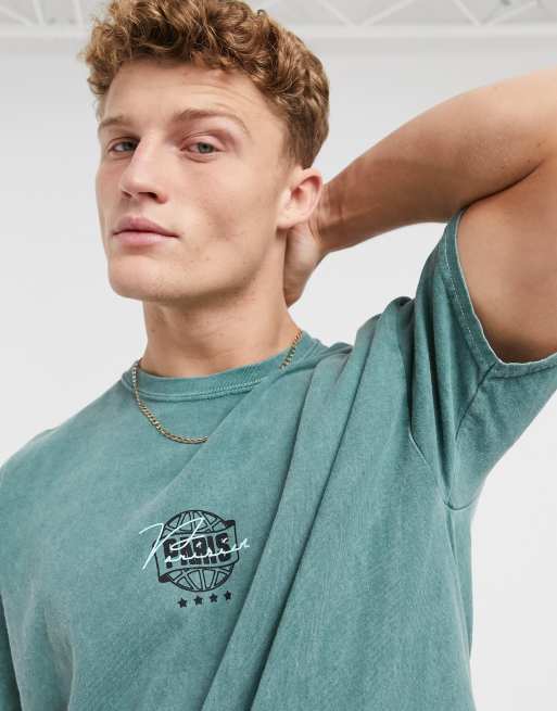 New Look – Oversize-T-Shirt mit Parisian-Print in Grün