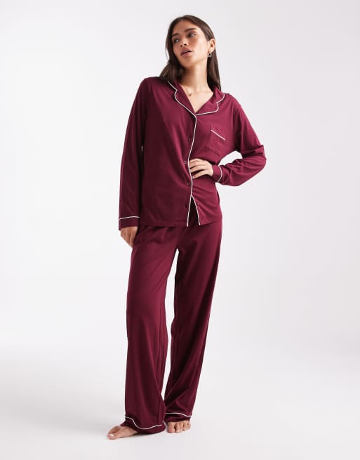New Look – Pyjama in Burgunderrot mit Reverskragen