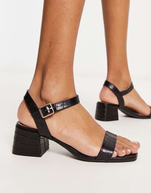 New Look – Sandaletten in Kroko-Schwarz mit offener Zehenpartie und niedrigem Absatz