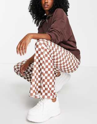 New Look – Schlaghose mit Schachbrettmuster in Braun