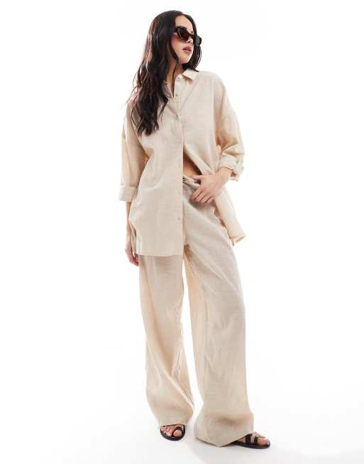 New Look – Set aus geflammter Baumwolle in Cremeweiß, mit Hemdbluse, Shorts und Hose