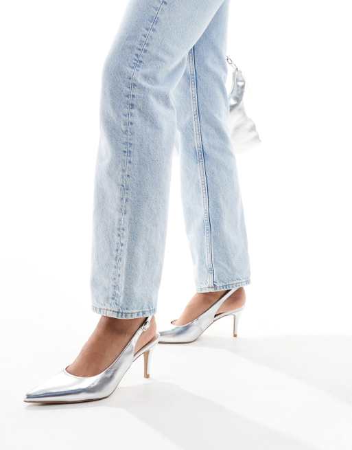 New Look – Silberfarbene Pumps mit Fersenriemchen