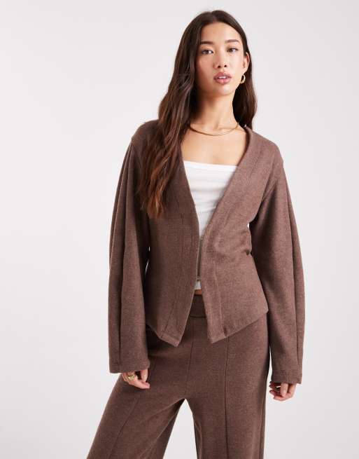 New Look – Strickjacke in Braun mit V-Ausschnitt, Kombiteil