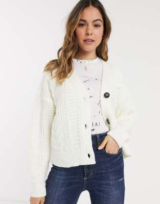 New Look – Strickjacke mit Zopfmuster in gebrochenem Weiß