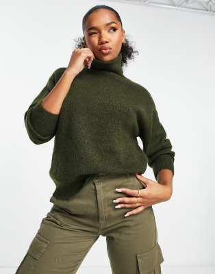 New Look – Strickpullover in dunklem Khaki mit Rollkragen