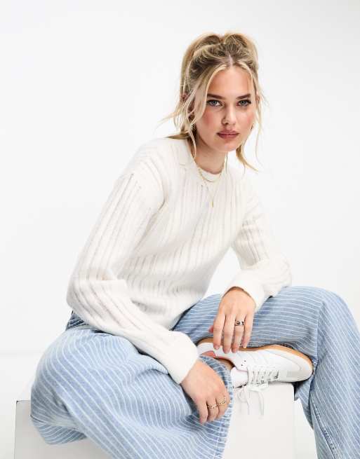 New Look – Strickpullover in gebrochenem Weiß mit Used-Details